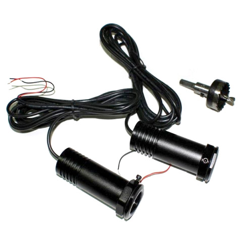 2. Просверлите отверстие под лезерный проектор фрезой, входящей в комплект лазеров. Предварительно убедившись, что лазер не будет препятствовать каким-либо элементам, внутренностям двери.