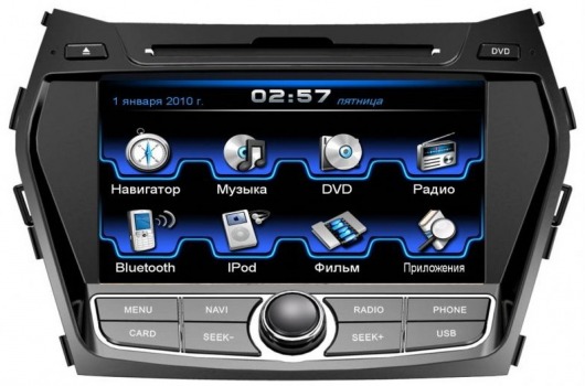 Автомагнитола Incar CHR-2492SF устанавливается в штатное место автомобиля Hyundai Santa Fe от 2013 г.в. Это штатное головное устройство идеально вписывается в интерьер вашего автомобиля и устанавливается без переходной рамки. Штатная магнитола Incar по форме, размерам, разъемам подключения полностью повторяет заводскую аудиосистему. Но при полном внешнем сходстве функционально штатная голова Интро несравнимо превосходит заводскую магнитолу.