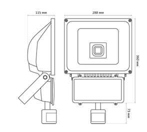 Размеры led прожектора — 288×360(+73)×115 мм. Данная модель рассчитана на напряжение 220 В. Мощность диодного прожектора X-Flash — 80 Вт., яркость — 7520 Лм, а температура свечения  4000 K (это нейтральный белый свет).