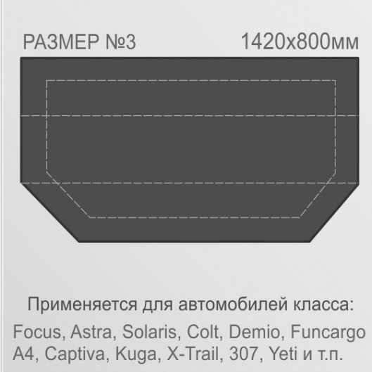 Автоодеяло «Русский стандарт Black №3» — это черный утеплитель для двигателя размером 1420x800 мм.  Для разных автомобилей подходят разные по размеру одеяла, поэтому будьте внимательны при покупке! Чтобы быстро подобрать для своего авто утеплитель нужного размера, воспользуйтесь формой подбора здесь или свяжитесь с нашим менеджером (+7 (495) 660-37-14). Ещё раз убедиться, что вашей машине подойдет одеяло №3 вы можете, найдя свой автомобиль в таблице.