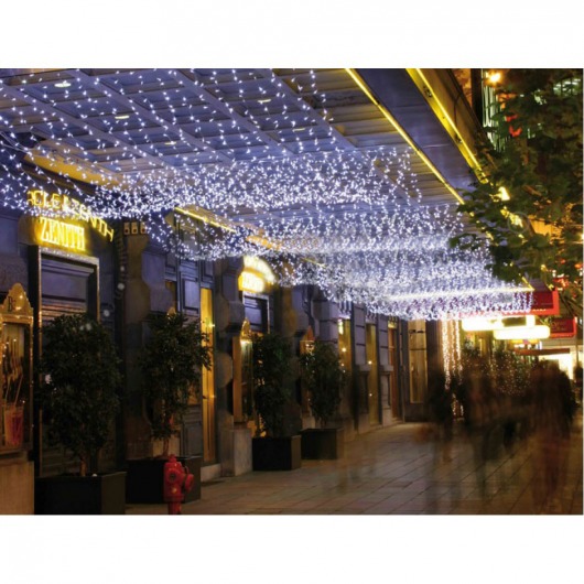 Световой занавес Playlight размером 2х3 м. Подходит для новогодней декорации фасадов зданий и улиц. Гирлянда-бахрома состоит из 490 светодиодов; синие светодиоды настривают на торжественную атмосферу и придают праздничному декору шарм и привлекательность. Вы можете соединить световые занавесы между собой в одну новогоднюю иллюминацию. Кроме того, гирлянду-занавес можно использовать в качестве подсветки зданий в тёмное время суток не только зимой. Она выделит ваш дом среди остальных зданий и добавит особое праздничное настроение.