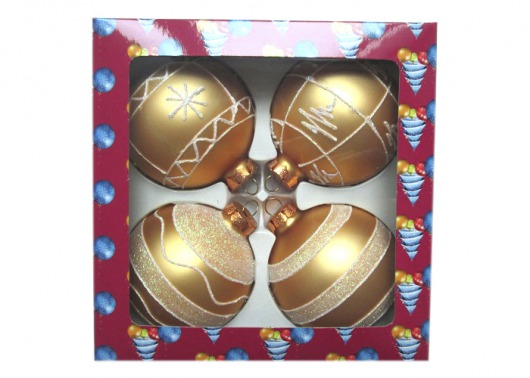 В набор PeneriGifts входят 4 стеклянных елочных шара диаметром 8 см. Золотистые матовые шарики с разноплановыми узорами смотрятся добротно, нарядно и гармонично. Двух-трех таких наборов будет вполне достаточно, чтобы целиком нарядить комнатную елку. А стоит ли говорить, что набор елочных шариков будет отличным новогодним подарком кому-нибудь из ваших родных и близких.