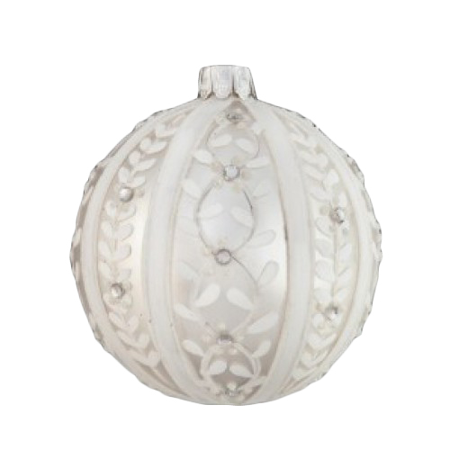 Новогодний шар серебряно-белый со стразами сделан из стекла и в диаметре составляет 8 см. Такие стеклянные шары действительно украсят и сделают неповторимой вашу новогоднюю елку.