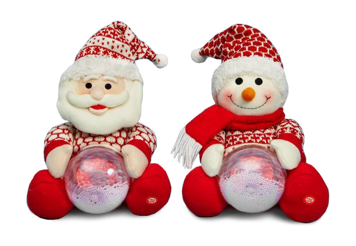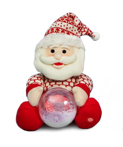 Анимационная музыкальная мягкая игрушка Санта со снежным шаром подарит прекрасное новогоднее настроение вам и вашим детям. Высота игрушки 23 см.  Санта музыкальный и анимационный: как только вы нажмете на кнопочку на левой ноге игрушки, Санта начнет напевать праздничную песенку и забавно качать головой в такт. А в сноуболле весело закружатся снежинки и начнется маленькая метель. Представьте только, в каком восторге будут дети! Да и любой взрослый будет рад такому подарку.