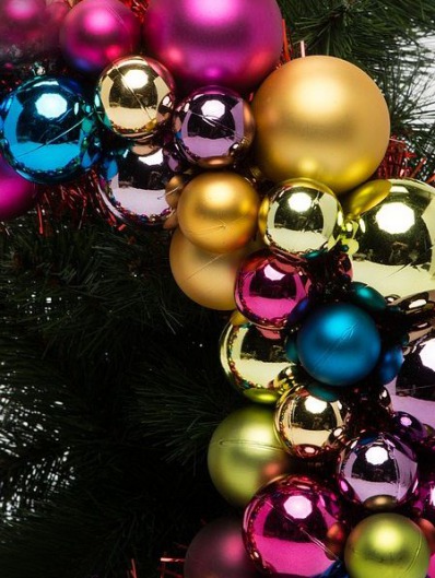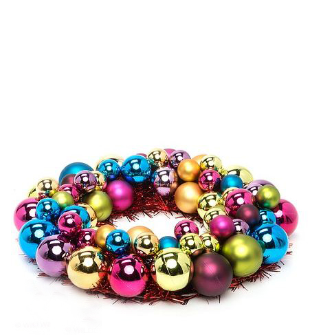 Вопросы и отзывы про Новогодний венок из ярких разноцветных шариков (61 см)