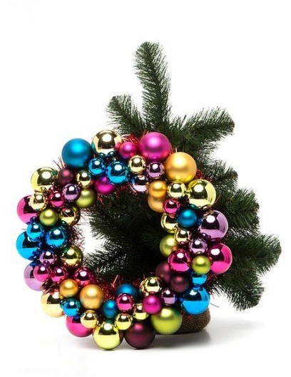 Новогодний венок из ярких разноцветных шариков (61 см)