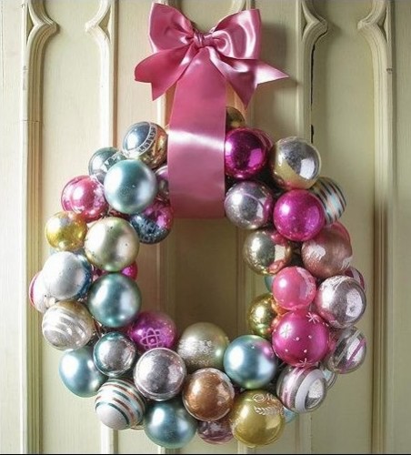 Стильный новогодний венок из ярких разноцветных шариков станет необычной и очень эффектной деталью праздничного интерьера. С таким веночком вы можете дать волю фантазии и придумать множество вариантов новогоднего декора. Например, прикрепить венок на дверь или стену, украсить им новогодний стол... Все, что вашей душе угодно. А еще можно украсить венок из шаров еловыми или сосновыми веточками — так он будет смотреться еще наряднее.