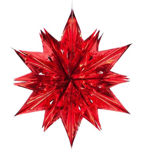 Красная звезда из фольги — прекрасный вариант эффектного и недорогого новогоднего украшения. Новогодняя звезда диаметром 60 см отлично подойдет для украшения уличных елок и просторных помещений. Такая звездочка смотрится очень нарядно, особенно при искусственном свете. А кроме того, она прочная и хорошо хранится, и поэтому будет радовать вас еще много лет.