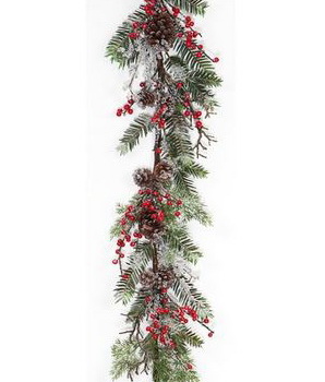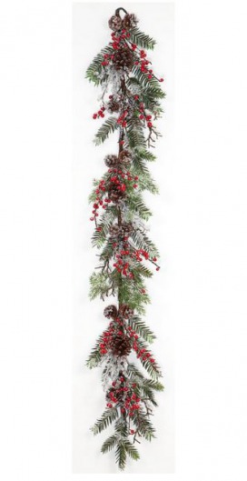 Гирлянда еловая "Ледяная сказка" с красными ягодами и шишками (1,52 м)