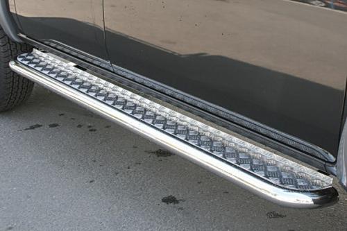 Боковые пороги-подножки сделаны специально для автомобилей Mazda BT-50 от 2007 г.в., поэтому устанавливаются достаточно просто и без повреждений корпуса. Помимо этого, стальные пороги с листом для Мазда БТ-50 смотрятся очень стильно и эффектно. Они добавят вашему авто еще больше солидности и внушительности.