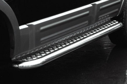 Боковые пороги-подножки сделаны специально для автомобилей Ford Expedition от 2003 г.в., поэтому устанавливаются достаточно просто и без повреждений корпуса. Помимо этого, стальные пороги с листом для Форд Экспедишн смотрятся очень стильно и эффектно. Они добавят вашему авто еще больше солидности и внушительности.