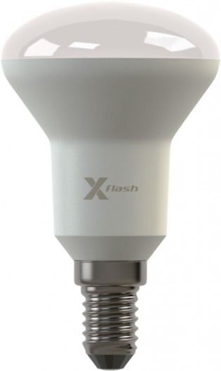 Светодиодная лампа X-Flash FUNGUS E14 5W выполнена в форме лампы-рефлектора с матовой колбой, корпус изготовлен из теплорассеивающей пластмассы, что значительно повышает ее безопасность. По форме, цоколю и размерам led лампа соответствует аналогичным люминесцентным лампам и лампам накаливания. Она имеет большой радиатор, который препятствует снижению светоотдачи и эффективно уменьшает температуру внутри лампы. Данная модель рассчитана на напряжение 220 В. Мощность диодной лампы X-Flash — 5 Вт., яркость — 420 Лм, а температура свечения  4000 K (это нейтральный белый свет).