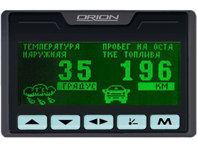 Автомобильный бортовой компьютер Орион БК-40 контролирует основные параметры работы автомобиля и выводит всю информацию на большой графический  мультидисплей, на котором вы можете увидеть до 7 параметров одновременно. Это позволит существенно сэкономить ваше время, ведь теперь нет необходимости отвлекаться лишний раз на переключение и поиск интересующих вас параметров.