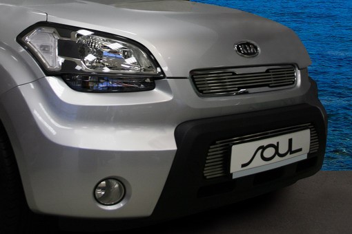 Тюнинг. Накладка на воздухозаборник Киа Соул, несмотря на небольшой размер, сделает «лицо» вашего автомобиля еще более стильным и привлекательным., особенно в сочетании с накладкой на решетку радиатора Kia Soul.