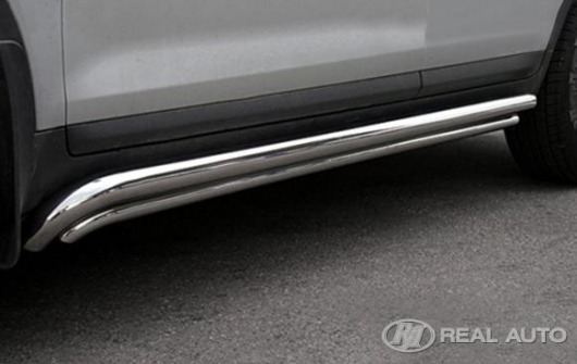 Пороги на Toyota Land Cruiser 200 – это боковые подножки из нержавеющей стали с двойной трубой, размерами 76х42 мм, которые позволяют более комфортно входить и выходить из салона автомобиля. Подножки Toyota Land Cruiser 200 очень прочные, надежные и долговечные: они не боятся коррозии, сколов и царапин и выдерживают большие нагрузки.
