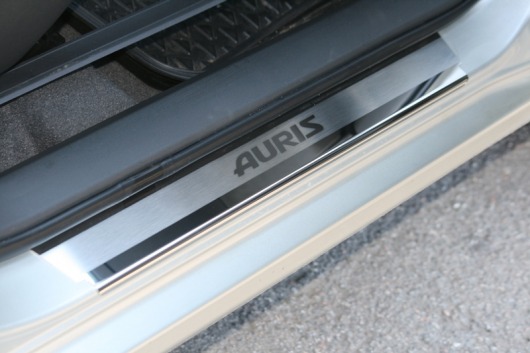 Накладки на пороги дверей Toyota Auris не только обеспечивают защиту верхней и боковой поверхности внутреннего порога, но и отлично вписываются в интерьер автомобиля, подчеркивая его стиль и индивидуальность. C монтажом проблем не возникнет: установка накладок на внутренний порог для Toyota Auris производится на штатные места с помощью скотча 3M.