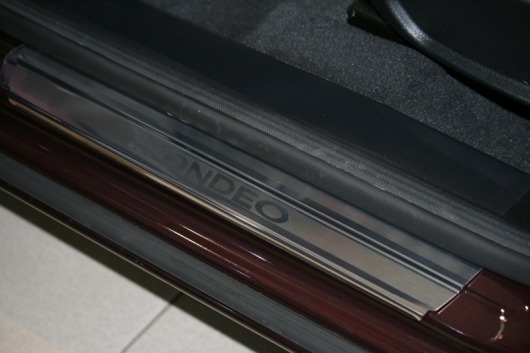 Накладки на металлические пороги дверей Ford Mondeo не только обеспечивают защиту верхней и боковой поверхности внутреннего порога, но и отлично вписываются в интерьер автомобиля, подчеркивая его стиль и индивидуальность. C монтажом проблем не возникнет: установка накладок на внутренний порог для Ford Mondeo производится на штатные места с помощью скотча 3M.