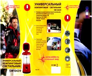 Солнечный светодиодный светильник SW-0439 благодаря своему компактному размеру, удобству в использовании и надежности станет для Вас настоящей находкой и верным спутником в походе. Вы сможете подвесить его в палатке, поставить на землю или на крышу автомобиля. Одно маленькое устройство решит проблему с освещением в походе и даст Вам возможность наслаждаться отдыхом, не забивая себе голову лишними хлопотами.