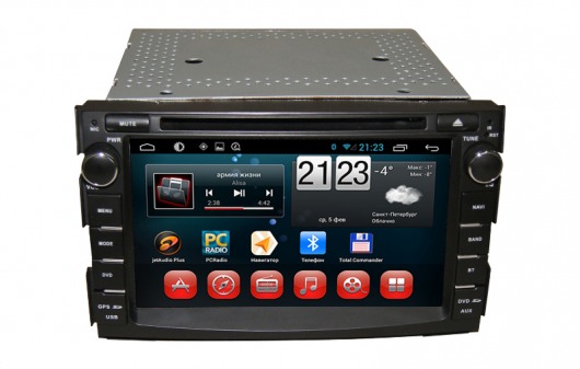 Штатное головное мультимедийное устройство позволяет прослушивать аудиофайлы различных форматов, просматривать видео (в том числе в HD-формате) и фотографии как с внутренней памяти устройства (8 Гб), так и с внешних носителей и  SD карт памяти. Вы также можете слушать аналоговое или интернет-радио или смотреть видео онлайн. Или подключить цифровой ТВ-тюнер, чтобы смотреть цифровые каналы прямо на экране устройства. А еще у вас есть возможность подключить DVD-привод и смотреть фильмы и управлять DVD-меню прямо с сенсорного экрана магнитолы.