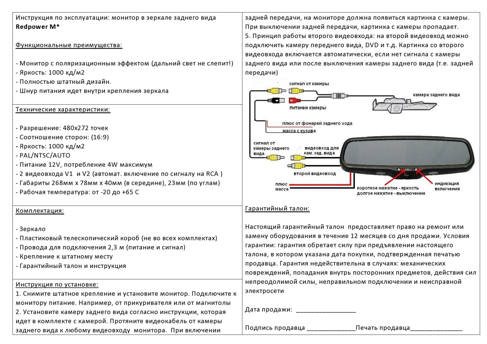 Вопросы и отзывы про Зеркало с монитором 4,3" Redpower M43 LED с креплением №1