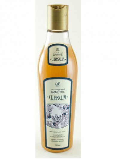 Шампунь для сухих волос и чувствительной кожи головы «Шикша» богат отварами и маслами. Настой шикши сибирской и напар корней одуванчика занимают в составе шампуня основное место, так как содержат большое количество биологически активных веществ и витаминов, жирных масел, инулина, микроэлементов, протеина и сахаров, которые укрепляют волосы, устраняют ломкость и возвращают им естественный блеск.