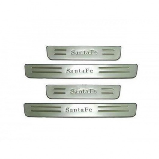 Внутренняя накладка на порог Hyundai Santa Fe   — это аксессуар автомобильного тюнинга, который защищает внутренний порог от механических повреждений при посадке и высадке из машины. Декоративные накладки с рисунком на внутренние пороги предназначены для автомобилей Hyundai Santa Fe  2010-2011 г.в.
