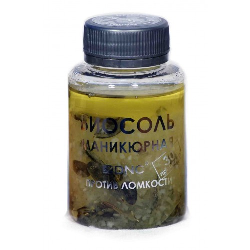 Биосоль маникюрная Против ломкости (DNC) — уникальное сочетание масляного комплекса и морской соли с растительными компонентами. Состав добавляется в горячую ванночку, настаивается, остывая до комфортной температуры. Ванночку для рук принимают 10-15 минут. Общее воздействие минералов, экстрактов и масел буквально оживляет кожу рук и ногти. Залог прекрасного и беспроблемного маникюра. Содержимого хватит примерно на 30 ванночек для рук.