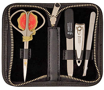 Компактный, не более мобильного телефона, маникюрный набор Mertz вмещает в себя самые необходимые аксессуры для того, чтобы быстро привести руки в порядок. Набор станет великолепным подарком людям, часто уезжающим из дома. Его минимализм и функциональность придется по вкусу настоящим мужчинам.