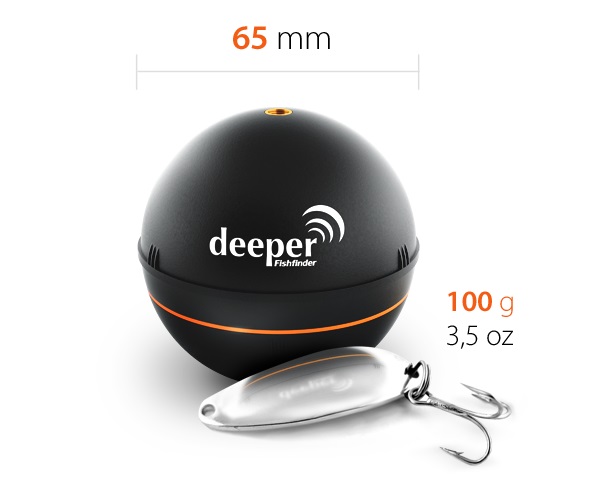 Эхолот Deeper Smart Fishfinder меньше и легче, чем любой другой традиционной сонар, благодаря весу всего 100 грамм и диаметру 65 мм. Он специально разработан, чтобы вписаться в коробку с вашими рыболовными снастями, поэтому вы сможете взять ваш личный гидролокатор, где бы вы ни рыбачили, и использовать его в тех местах, где большинство эхолотов работать не могут (например, из каяка).