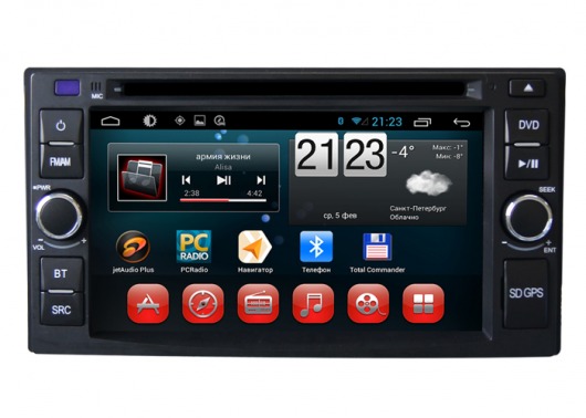 Штатное головное мультимедийное устройство позволяет прослушивать аудиофайлы различных форматов, просматривать видео (в том числе в HD-формате) и фотографии как с внутренней памяти устройства (8 Гб), так и с внешних носителей и  SD карт памяти. Вы также можете слушать аналоговое или интернет-радио или смотреть видео онлайн. Или подключить цифровой ТВ-тюнер, чтобы смотреть цифровые каналы прямо на экране устройства. А еще у вас есть возможность подключить DVD-привод и смотреть фильмы и управлять DVD-меню прямо с сенсорного экрана магнитолы.