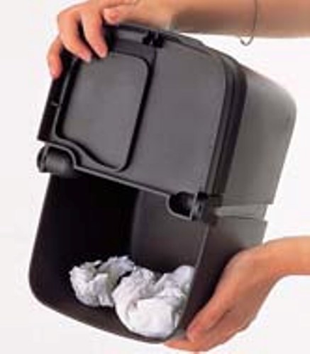 Контейнер для мусора FIZZ-845 изготовлен из черного прочного пластика. Для того, чтобы контейнер не переворачивался, в его дне установлен утяжелитель. Приспособление состоит из двух боксов, каждый из которых имеет крышку с отверстием для мусора. Размеры контейнера всего 275х170х160 мм, однако, этого вполне достаточно для хранения мусора между остановками.