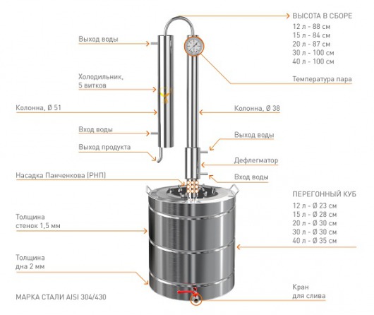 Самогонный аппарат Добрый Жар Профи - это уникальная конструкция, сочетающая в себе все плюсы классического дистиллятора (самогонного аппарата) и ректификационной колонны.