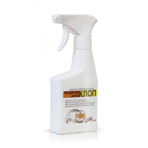 Медилис-антиКЛОП – это эффективное средство для уничтожения кровососущих клопов. В его состав входит три различных компонента (перметрин, циперметрин, тетраметрин), что делает жизнь вредных насекомых просто невыносимой и короткой, ведь они не успевают адаптироваться к препарату со сложным составом. Препарат представляет собой летучую жидкость желтоватого цвета.