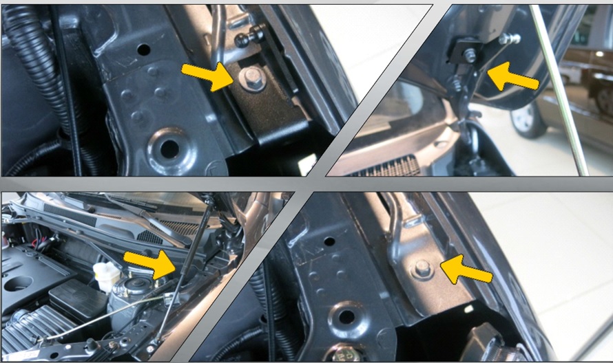 Отличительной особенностью от большинства аксессуаров является простота и время установки. Автоупоры капота возможно установить как в сервисной центре, так и самостоятельно. Для монтажа необходимо пара стандартных гаечных ключа и 20 минут свободного времени.