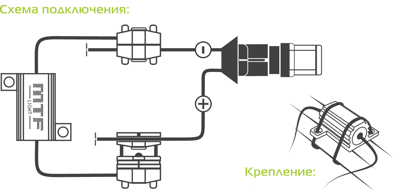 Блок подключается непосредственно в бортовую сеть параллельно LED-лампе. Закрепить балласт можно, используя саморезы, двусторонний скорч или хомуты.