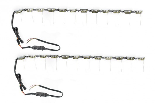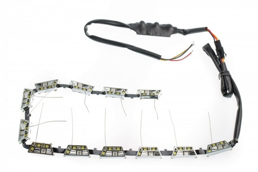 Гибкие дневные ходовые огни (DRL) Optima предназначена для установки в фары автомобиля. Может работать в 2-х режимах: для подсветки и индикации поворота, а также в режиме дневных ходовых огней (DRL). При повороте лента светит желтым светом, при движении прямо — белым. Диодная лента имеет гибкий корпус, поэтому может быть согнута в любом направлении.