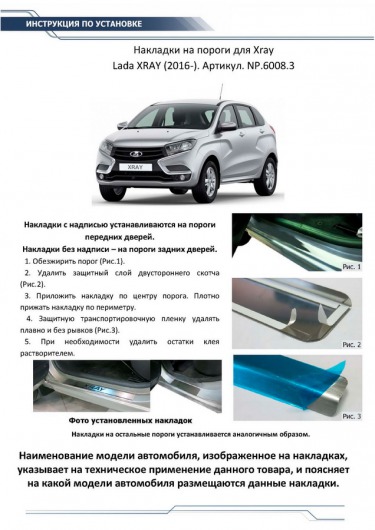 Вопросы и отзывы про Накладки на пороги для Lada X-RAY от 16 г.в. (Rival)