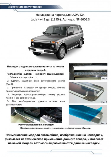 Вопросы и отзывы про Накладки на пороги для Lada 4х4 от 95 г.в., 5-дверная (Rival)