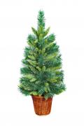 Новогодняя елка в корзине подарит вам праздничное настроение. Дерево плоское с одной стороны и помещено в корзину, и вы можете повесить его на дверь или стену. Хвоя литая и ПВХ. Искусственная елка изготовлена из экологически чистых материалов, которые совершенно не горят. Высота изделия 0,76 м, оно имеет хвою различной длины и разных оттенков зеленого цвета.