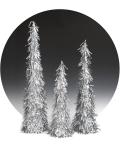 Набор из 3 елок-конусов высотой 60, 75 и 90 см станет интересным и оригинальным украшением интерьера. Серебряные елки выглядят очень симпатично, их не нужно наряжать. Такие новогодние елки из фольги будут великолепно смотреться и дома, и в офисе. Не горят и не вызывают аллергии.