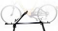 Велосипед фиксируется в вертикальном положении, крюк держателя снабжен специальным защитным покрытием.