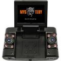 Модель автомобильного mdr видеорегистратора с двумя камерами, высоким разрешением видео и большим цветным дисплеем. Экран можно повернуть на 270 градусов. Широкий угол обзора. Есть возможность ночной съемки благодаря шести инфракрасным светодиодам.