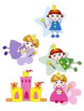 4 маленьких феечки-принцессы вышли из замка (по 4 рисунка каждого вида), чтобы полетать на лугу и порадовать фокусами с помощью своих волшебных палочек новую подружку - Вашу очаровательную хозяйку детской комнаты.