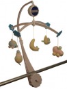 Мобиль надежно крепится к стенке детской кроватки массивным "винтом". Музыкальный вращающийся механизм заводится механическим способом.